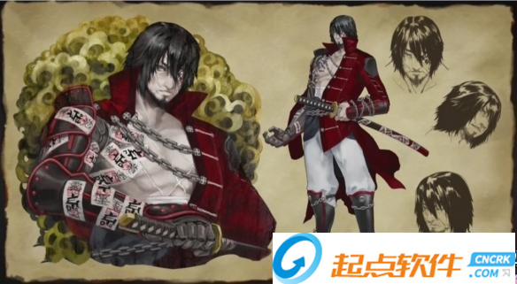 游戏中的登场武士“斩月”,他的右臂贴满了显眼的符咒。