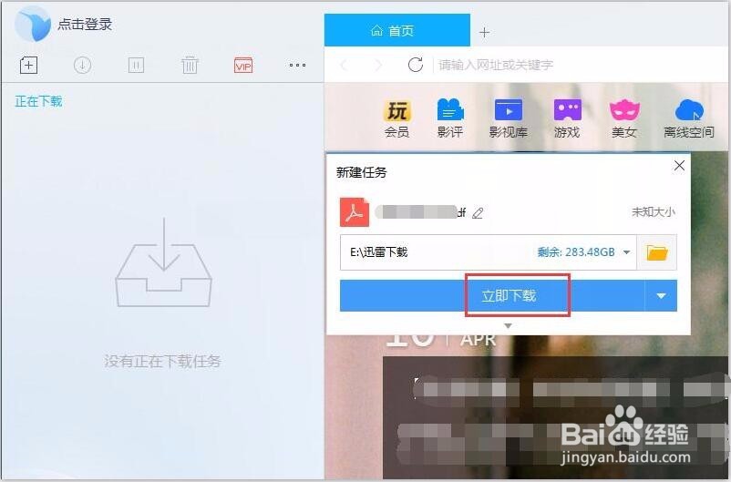 然后我们打开迅雷,选择新建任务,将上面的网址复制到任务列表中,这样迅雷就会识别网址中的下载资源直接显示了,我们点击立即下载就可以了。