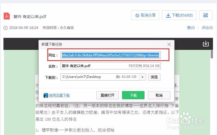 白度云盘大文件下载速度慢怎么解决?点击文件以后显示文件基本信息,下面有个下载链接。