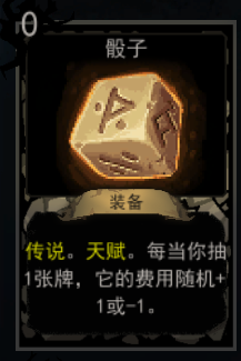 传说。天赋。每当你抽一张牌,它的费用随机+1或-1。