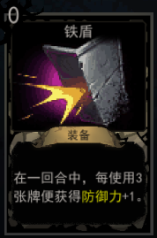 卡牌分为五种类型,攻击、防御、技能、装备、诅咒,使用卡牌会消耗能量,消耗的能量数可以在左上角看到,卡牌上方是代表品质的边框,而卡牌描述中的黄色字体是关键词,拥有着特殊的效果。