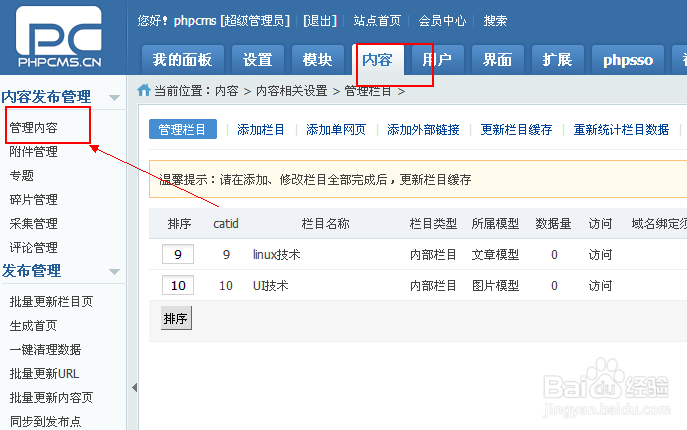 1. 栏目创建【栏目创建的时候需要模型的选择和模板的选择】