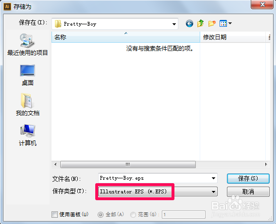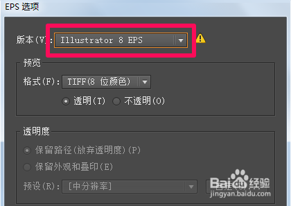 点击保存后在弹出的对话框中选择低版本的Illustrator 8 EPS,最后点确定保存。
