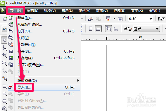 高版本的CorelDRAW是可以直接打开ai文件的,我们直接点击文件-打开。