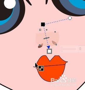13.给嘴唇添加高光。用贝塞尔工具绘制两个白色的形状。如图。分别添加透明度。