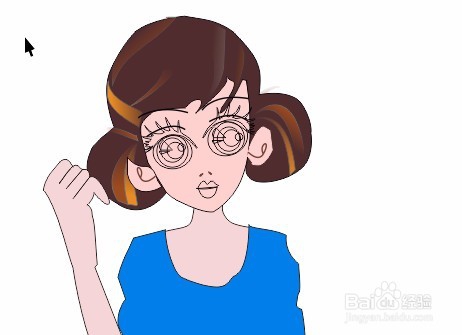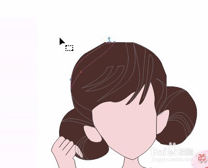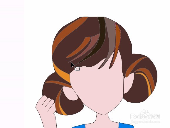 10.给人物头发添加颜色。用贝塞尔工具绘制。并用形状工具调整。给头发分别添加棕色#7A615C;土黄色#9E4C12;黄色#E78B24;类似黑色#2C1F0E;粉红色#864D44;棕色2#8E5132;