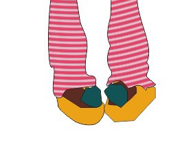 9.鞋子分别填充#ECA216黄色。棕色#5C2B22;墨绿#125356;然后按ctrl+pagedown向后层移动。如图。群组。然后拖过来,放在裙子下面。然后按ctrl+pagedown向后层移动。如图。