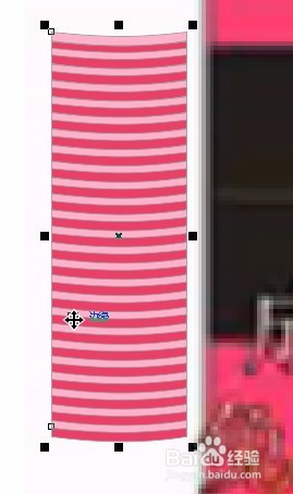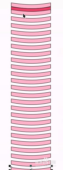 7.用矩形工具绘制矩形,按ctrl+q转曲。用形状工具调整成弧形。如图。第一个填充#FFB2C8,第二个填充红色#DE4A6B。然后按住ctrl键复制第一个到第三个黏贴。按ctrl+r再制。用同样的方法再制第二个。去掉轮廓线。并群组。拖大一些。
