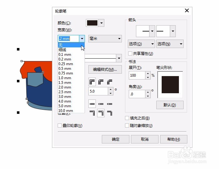 12.绘制五官。用贝塞尔工具。和形状工具调节。如图所示。放置在人物脸上。填充颜色。眉毛用艺术画笔画。触笔宽度0.762mm,笔触为两头尖的。如图。1.先绘制好路径,再选择艺术笔,调好大小,再选择笔触。如图。眼珠从内而外分别填充,黑色,蓝色#4B637F;天蓝色#00A0D4;黑色;白色;鼻子#714336;嘴唇#FF4700;去掉眼睛里的轮廓线。鼻子颜色#F3BEAE;去掉轮廓线,添加渐变透明度。如图。下嘴唇复制一层。放在下层,填充黑色,并移动好位置。做阴影。并左右缩小一些。给眼珠的高光添加透明度。