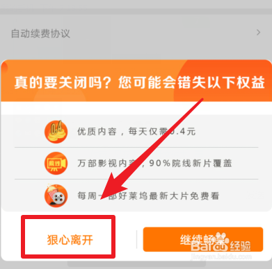 点击后,页面会弹出挽留的对话框,我们点击狠心拒绝,即可关闭华为视频会员的自动续费功能。