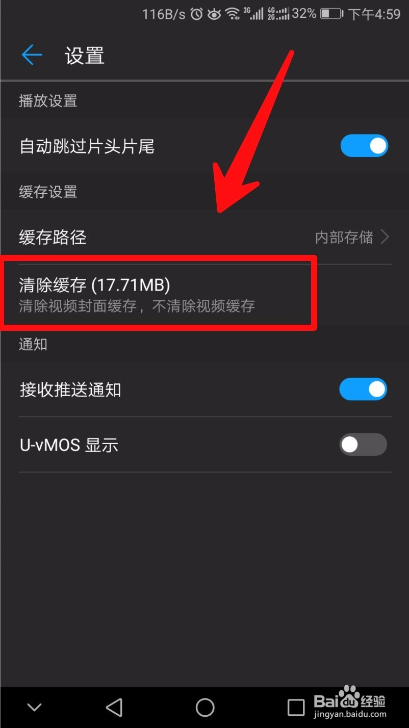 点击“清除缓存”,这里的缓存不是视频缓存,而是视频封面缓存。