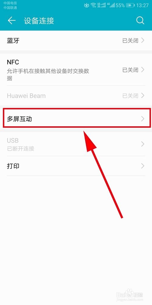 在“设备连接”里找到“多屏互动”,打开它