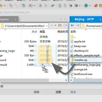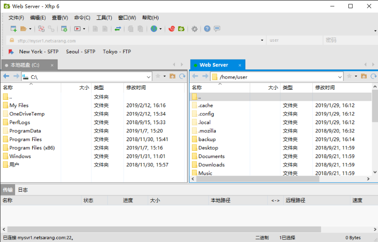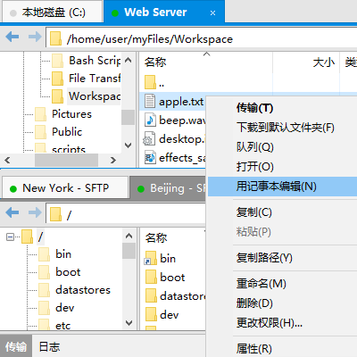 3.连接成功后,直接进行两个系统之间的文件操作即可:
