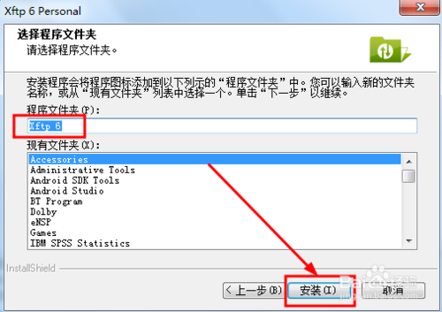 然后创建开始菜单选项的文件夹名称,默认就可以了(也可以选择现有的文件夹),点击安装