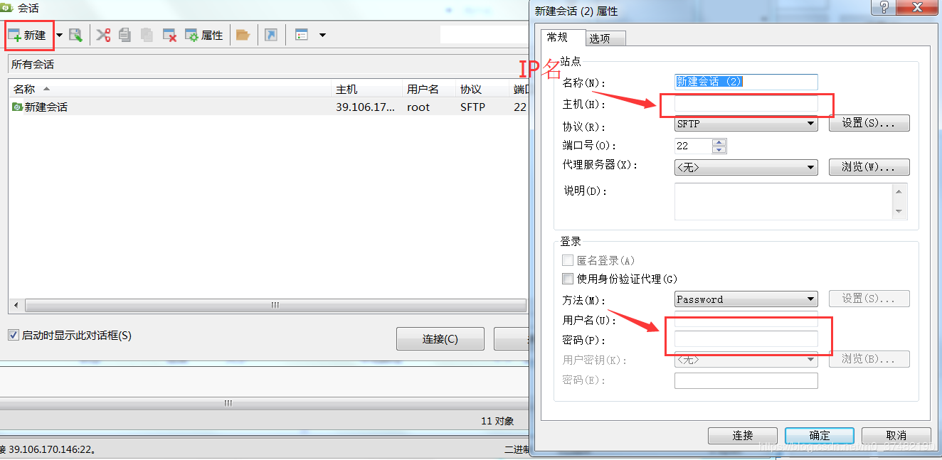 输入主机IP或者域名,账号密码等。之后点击确定。