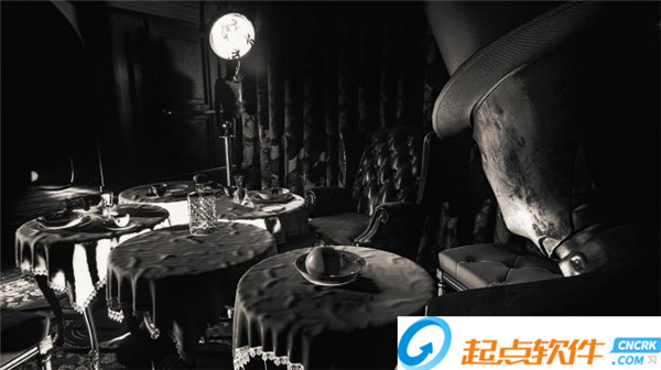 以独立游戏的标准来衡量,初代《层层恐惧》的画面细节就已经精致得令人赞叹。本作延续了系列华丽而细腻的画风,甚至还在此基础上更上一层楼。毕竟这部作品的主题是“电影”,游戏中的许多场景也因此大量运用了许多应景的电影特效。有时候你会置身于充满噪点、宛如黑白默片的场景当中;有时候则会频繁利用光阴和背景虚化来突出试图强调的主体。漫步其中,常常就像真的活在一个胶片的世界一样。