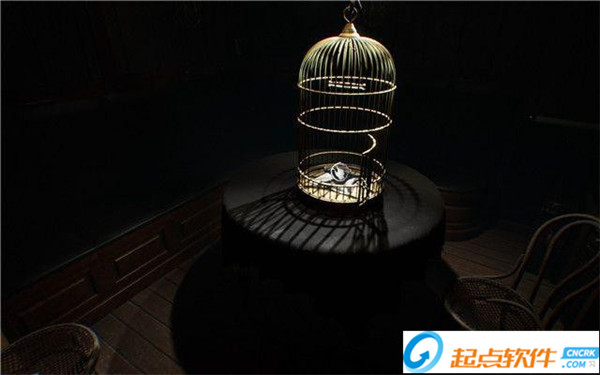 下一个解谜场景是鸟笼这里,与里面的物品互动后,鸟笼会飞上天。