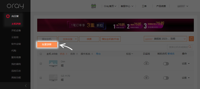 或通过官网管理中心——向日葵——主机列表——批量部署。