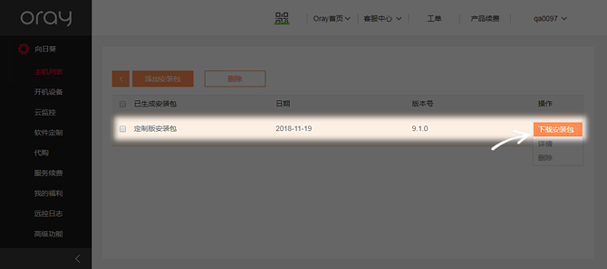 安装包生成后,在主机列表中找到对应的安装包,点击“下载安装包”。