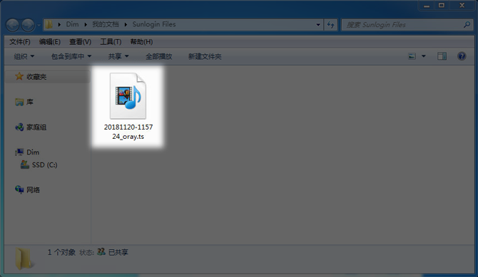 打开屏幕录像文件保存的文件夹即可以看到已经录制好的.ts文件。
