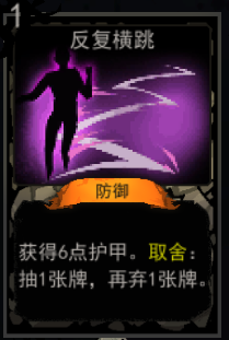 获得6点护甲。取舍:抽1张牌,在弃1张牌。