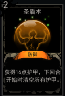 获得16点护甲,下回合开始时清空所有护甲。