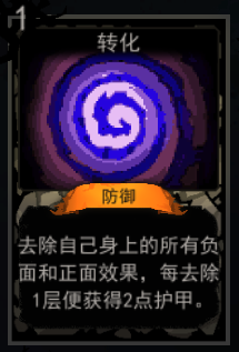 去除自己身上的所有负面和正面效果,每去除1层便获得2点护甲。