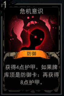 获得4点护甲。如果牌库顶是防御卡:再获得8点护甲。