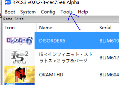 6.然后打开模拟器是不是会出现游戏缩略图了。成功运行游戏首先需要安装系统固件,不安装固件大多数游戏都会模拟失败。别担心,点击tools;