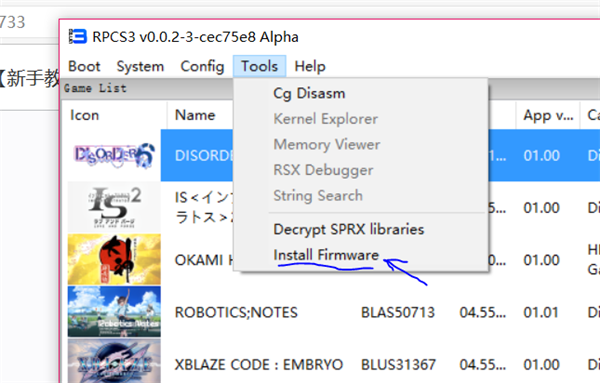 4、打开RPCS3模拟器,然后点击file install firmware安装固件。