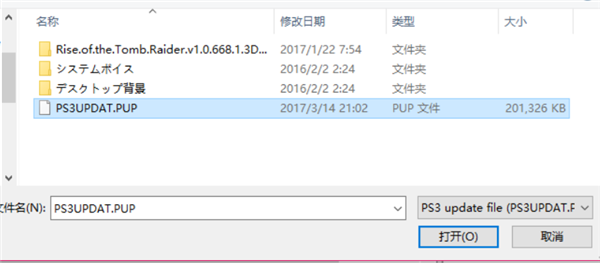 8.找到你刚才重命名的PS3UPDAT.PUP,点击打开;