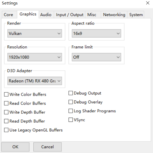 13.然后进入graphics图形设置。render渲染api默认vulkan速度最快图像也好,各个游戏配置不同,请自行实验;