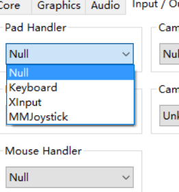 19.点击pad handler可以选择控制方式。我们先选择keyboard键盘控制;