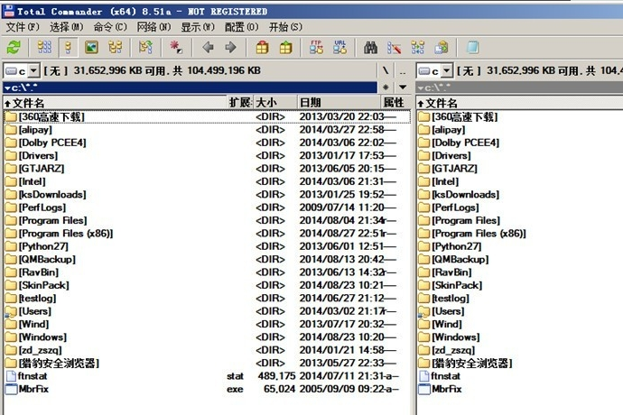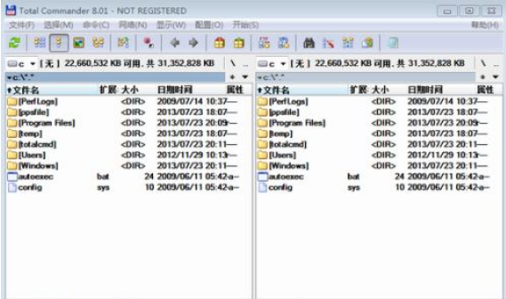 Total Commander的最大特点是由两个列表窗口组成,这种设计避免了windows资源管理器目录树在文件操作的一系列弊端:
