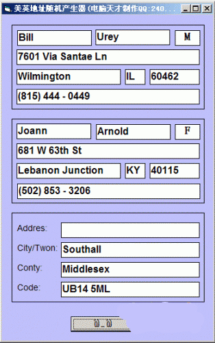 1、自动生成美国个地区地址,方便注册之用;2、城市、街道、编码等信息自动生成,确保可用;