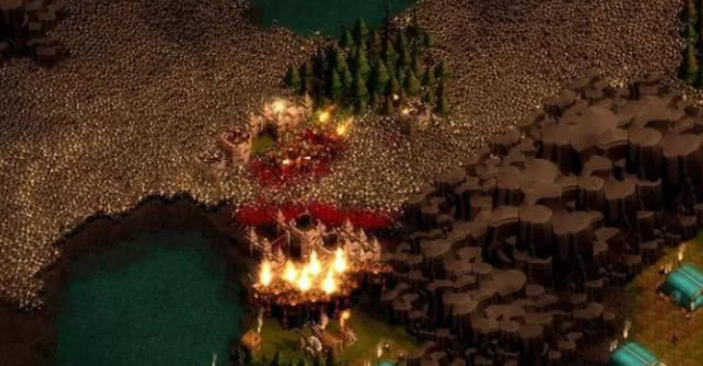 敌人的大军会不断向你涌来,你能抵抗入侵多久完全取决于你建造据点和领导军队的能力。游戏实时进行,但你也可以随时暂停来发布命令或开始建造新建筑。战斗残忍且野蛮,玩家必须应付各种事情,从火灾肆虐据点到成堆的尸体传播死亡和疾病。