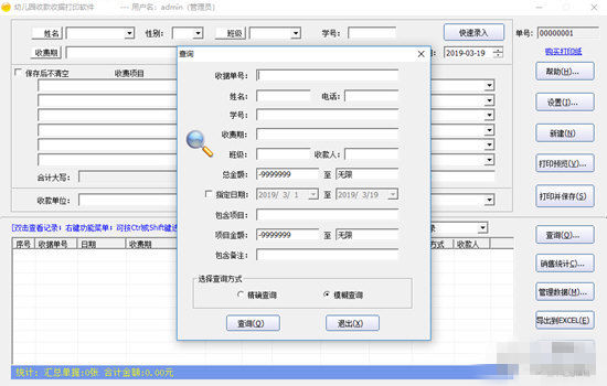 3、收据记录可保存、修改、删除、查询统计等管理操作