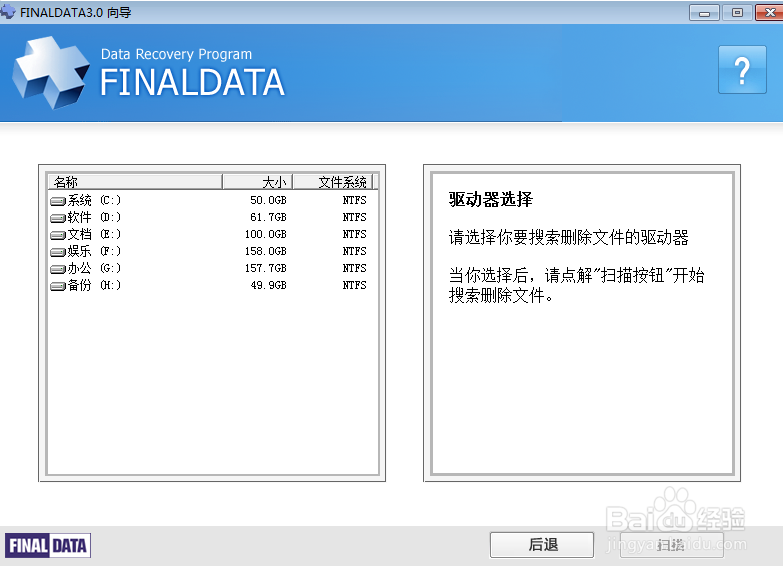 以FinalData 2.0企业版为例介绍恢复丢失的数据的方法:
