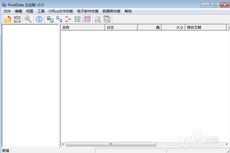 第1步,在开始菜单中依次单击“所有程序”→FinalData→FinalData Enterprise 2.0菜单项,打开“FinalData企业版”窗口。然后依次单击“文件”→“打开”菜单命令。