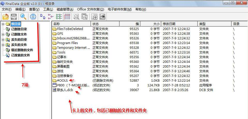 扫描整个分区,列出所有文件,针对分区被格式化或无法正常访问等情况。也是文件恢复的补充方案。