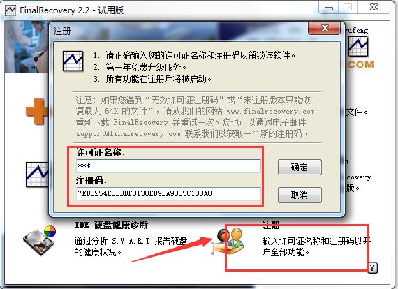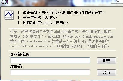 2、打开finalrecovery点击注册,将注册码粘贴点击确定即可。