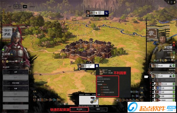 提出了需要之后下方会显示不利因素,也就是我们提出要求对对方的价值,我们需要做出等价的交换才能使交易成立,玩家能够点击使之生效来快速进行资源匹配。当然玩家除了交易领土外还能进行诸如联姻、战争和附庸等00事宜来达成自己想要的目的,外交对于整个游戏来说起着至关重要的作用需要妥善处理。