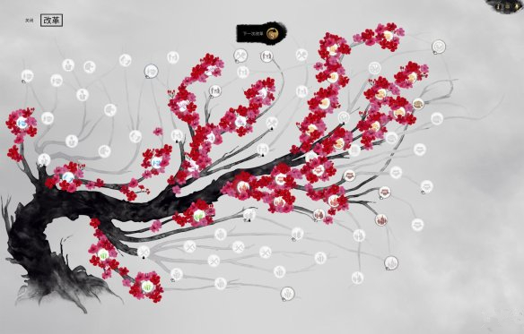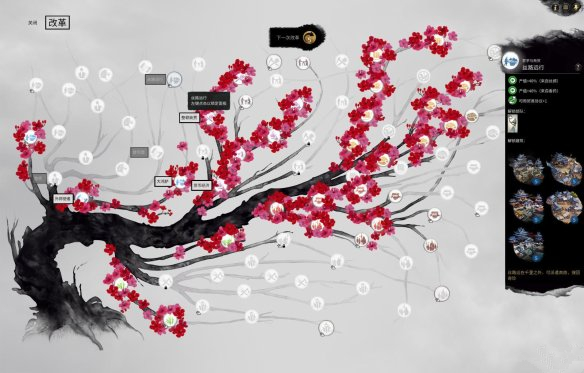 改革以树形图展示,需要解锁前置改革条目才能开启后面的内容,改革需要一定的回合数才能再次发布。