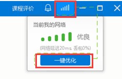如果是PC端,鼠标放到教室右上角的网络信号上即可看到“一键优化”按钮,点击优化即可。同时可以检查下自己所处环境下的网络情况如何。