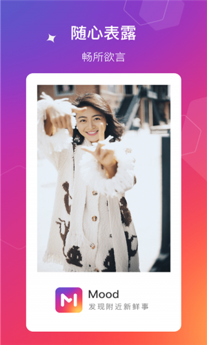 记录与交流、态度与想法,爱好与心情、都可以在Mood中表达的淋漓尽致,不受关系链的约束。