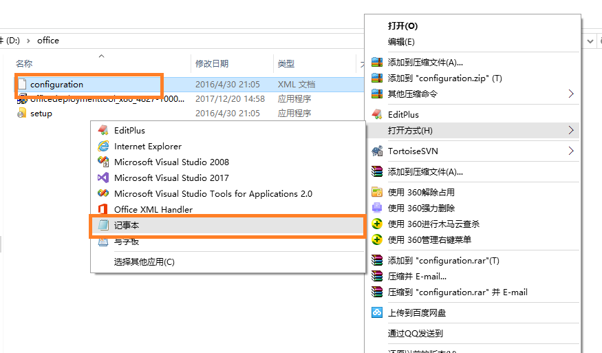 3.使用Windows自带的记事本打开编辑上文中的configuration.xml文件。