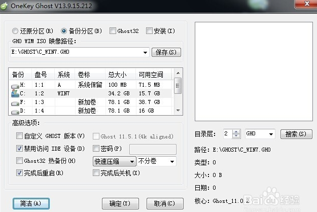 首次备份WIM的窍门: 点“备份分区”单选框时默认为GHO,要变成WIM