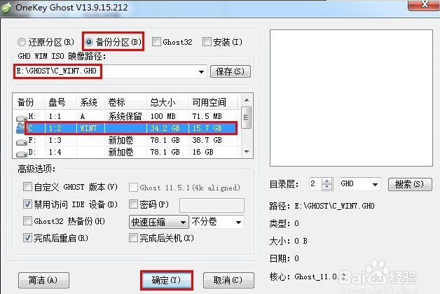 ONEKEY GHOST可以备份在OEM的隐藏分区里吗?