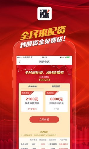 免费体验:针对涨8首单用户设计的产品,免费领取2000元炒股资金,操盘周期2个交易日,只需提供100元保证金,不管盈亏全额返还。