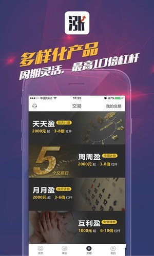 月月盈:针对稳健投资用户设立,已最安全的倍率进行投资,以达到利益翻倍,此产品资金放大3-6倍不等,并提供2千-500万不等的额度,按月收取超低管理费。